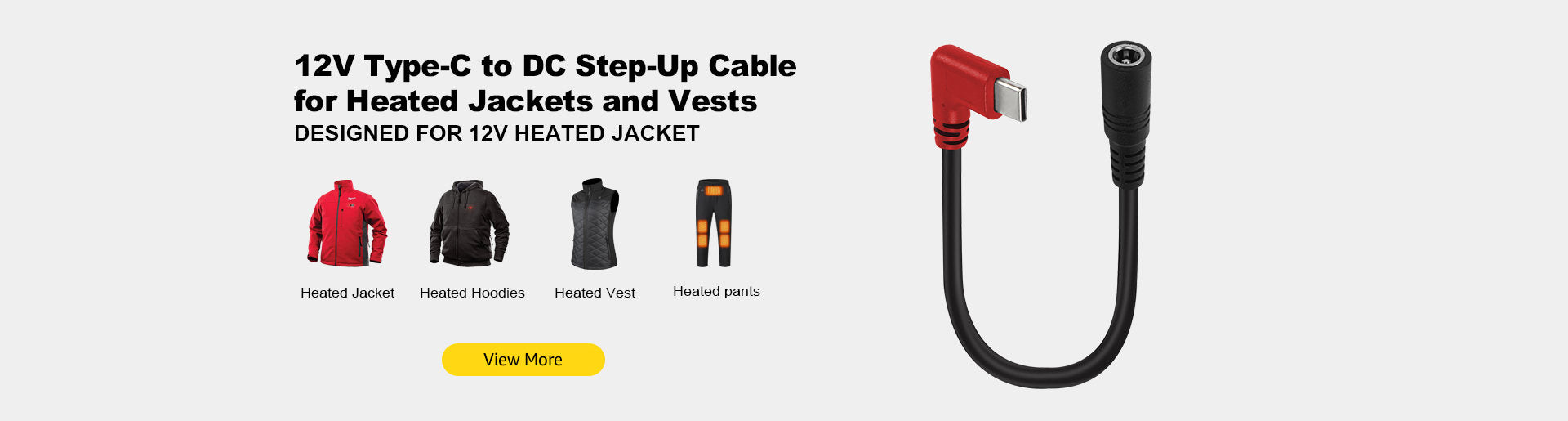 Smarkey 12V Heated Jacket Battery Step-Up Adapter Charger Cable Compatible with Milwaukee
